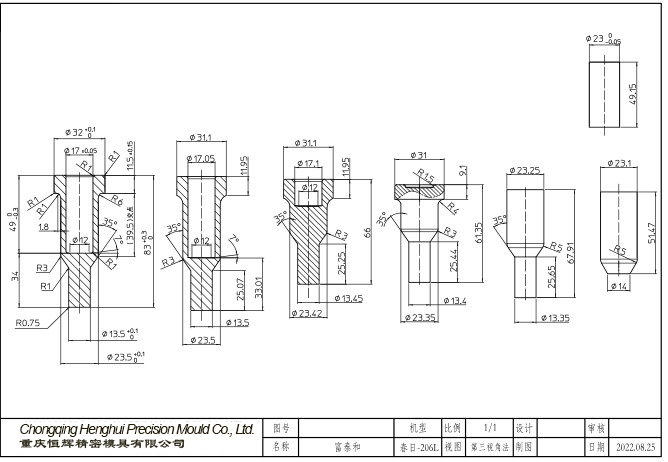 A Chongqing Henghui Precision Mold Co., Ltd. está equipada com equipamentos de fabricação avançados, incluindo tornos CNC, centros de usinagem, máquinas de moagem cilíndrica, máquinas EDM e máquinas de corte.Nossa garantia de qualidade é apoiada por testadores de dureza Rockwell, projetores e instrumentos de medição de imagem 3D.